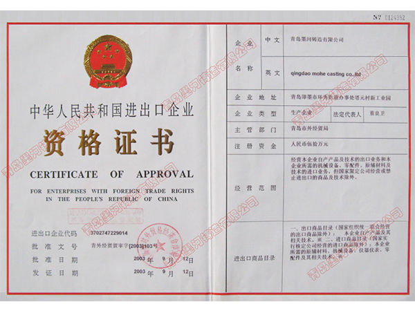 青島墨河鑄造有限公司 聯(lián)系人:董照 電話:13953213469(微信同號(hào)) 座機(jī):0532-87566543 郵箱:mohe@moher.cn QQ:1678294021 地址:青島即墨市泰山一路南端186號(hào)